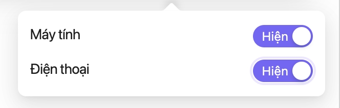 - Ẩn/Hiện trên thiết bị: Cài đặt để khối Ẩn/Hiện trên Máy tính/Điện thoại