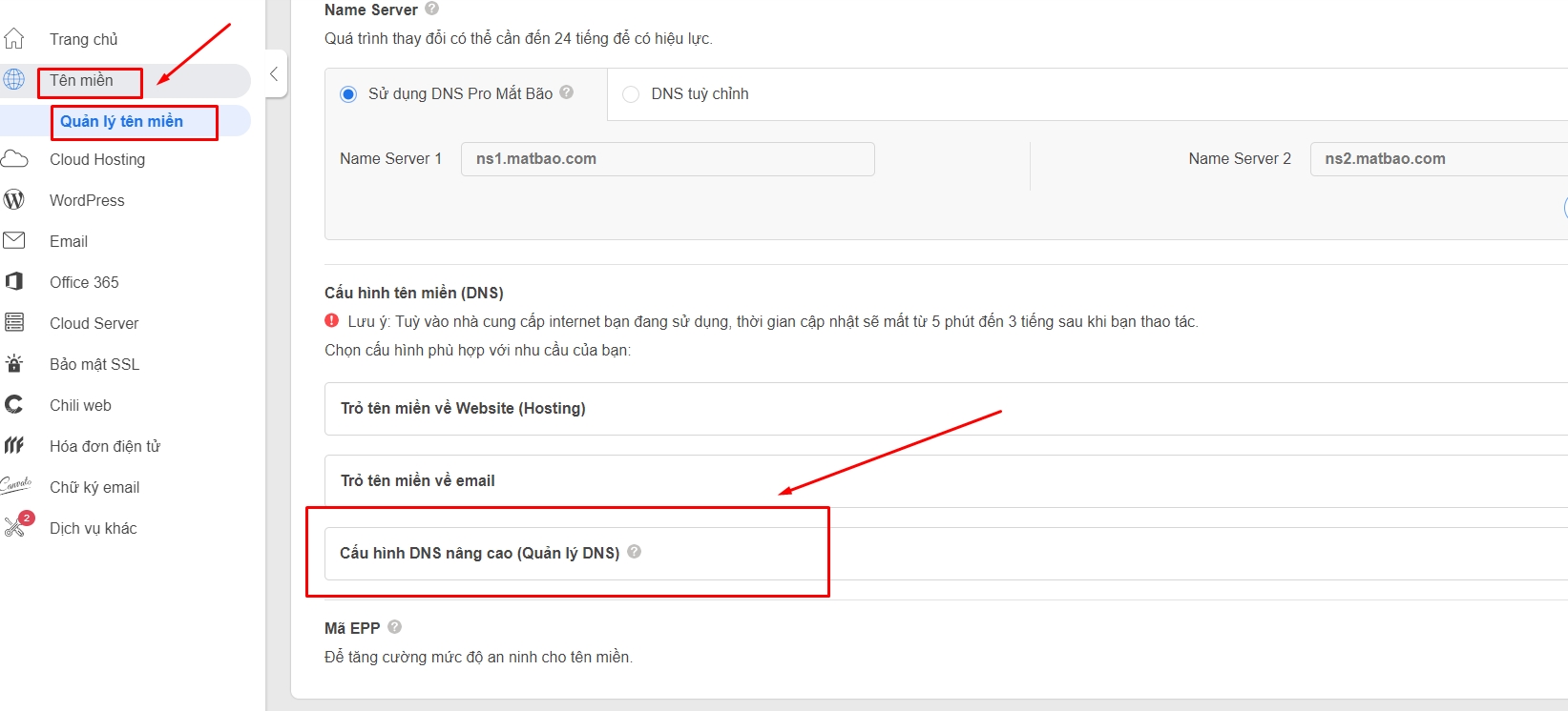 Mắt Bão hiện tại có 2 giao diện cấu hình trỏ DNS, bạn xem mình đang sử dụng giao diện nào thì làm theo hướng dẫn của giao diện đó.